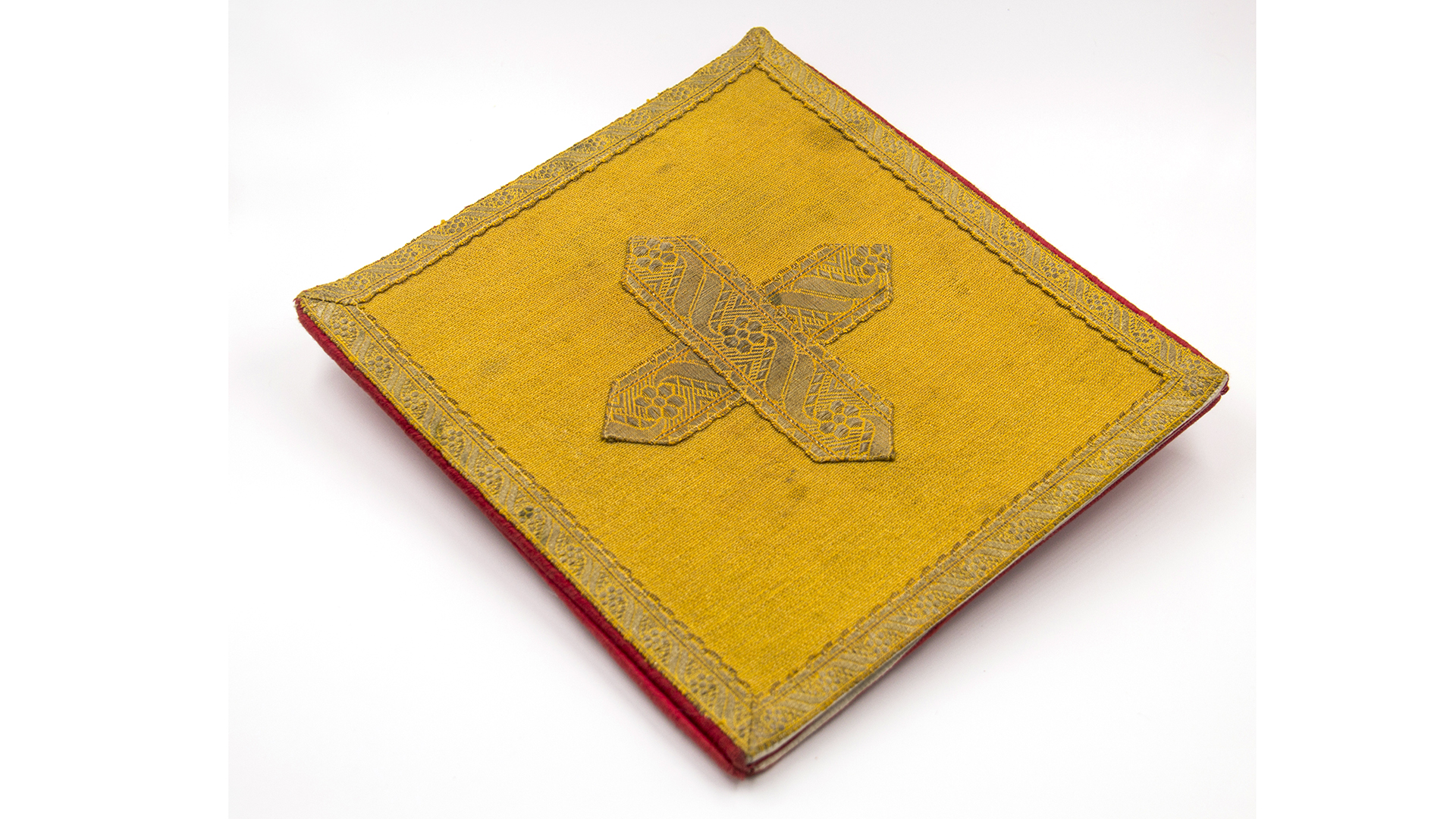 dc.description | dc.description | Golden lamé with golden ribbon on the edges, forming a cross in the center. | |