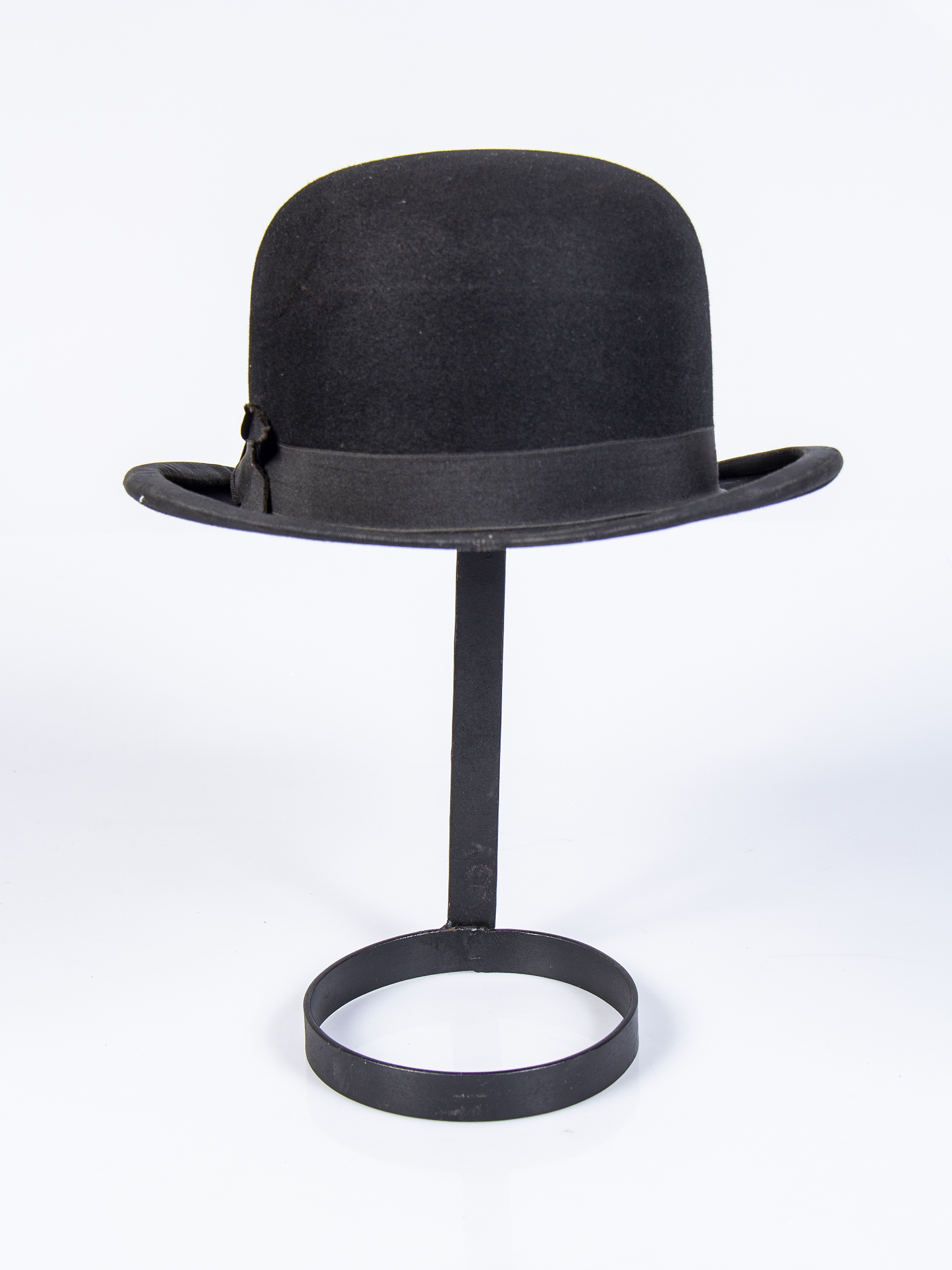 Black felt bowler hat for men with a black ribbon on the band. Exclusively manufactured in London at Glyn & Co. factory, situated at 44 Old Bond St., for A. Presciutti & Co., a Chilean hat shop located at 165 Condell Street, Valparaíso.