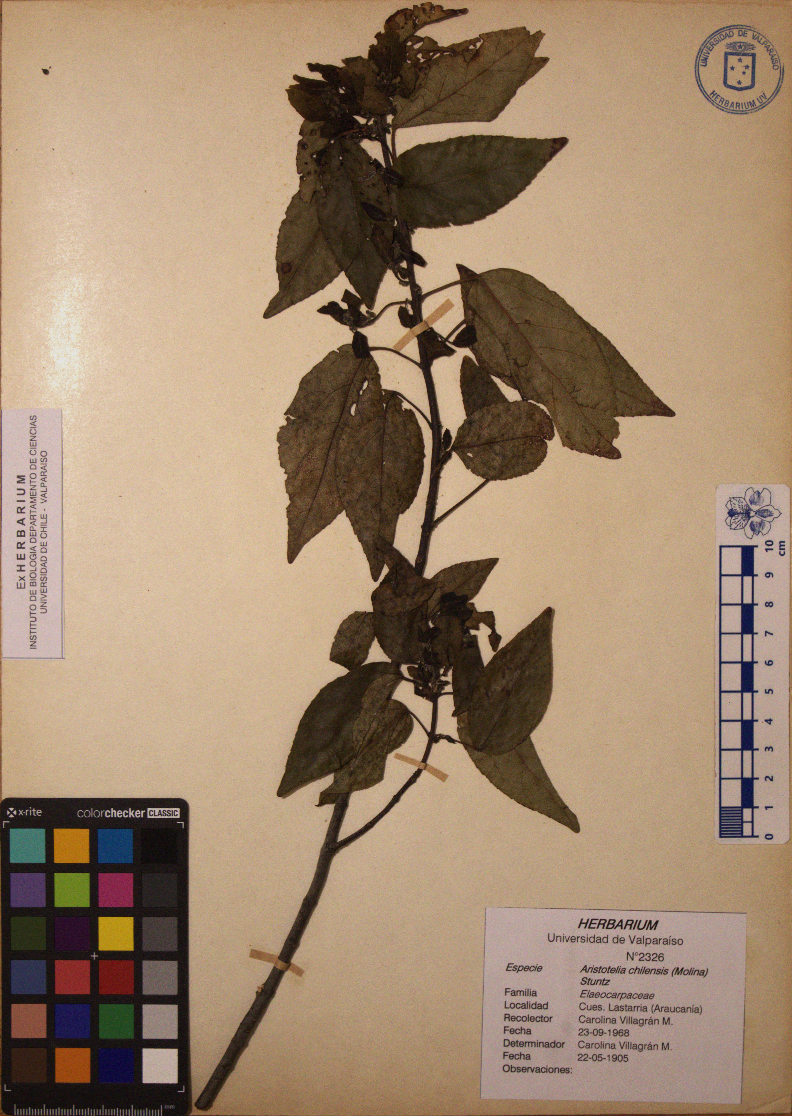 Flora nativa originaria de Chile y Argentina, perteneciente a la familia Elaeocarpaceae y del género Aristotelia.