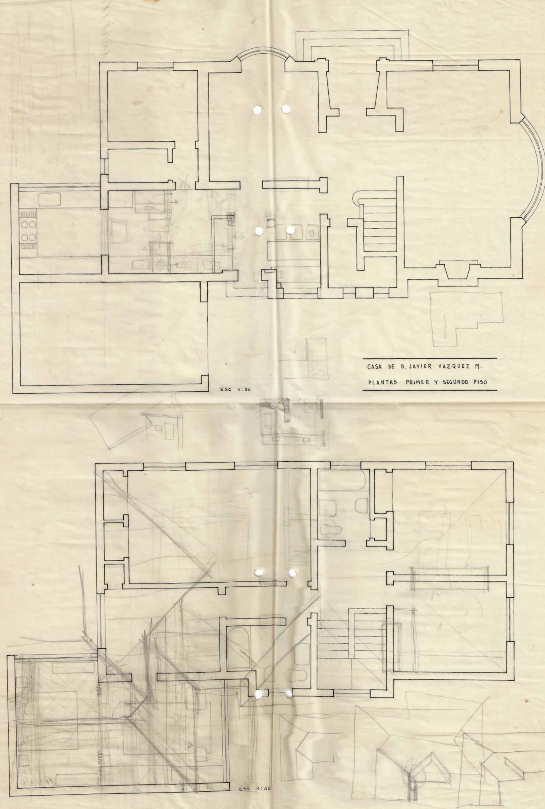 Planos pertenecientes a la casa de Javier Vásquez en escala 1:50