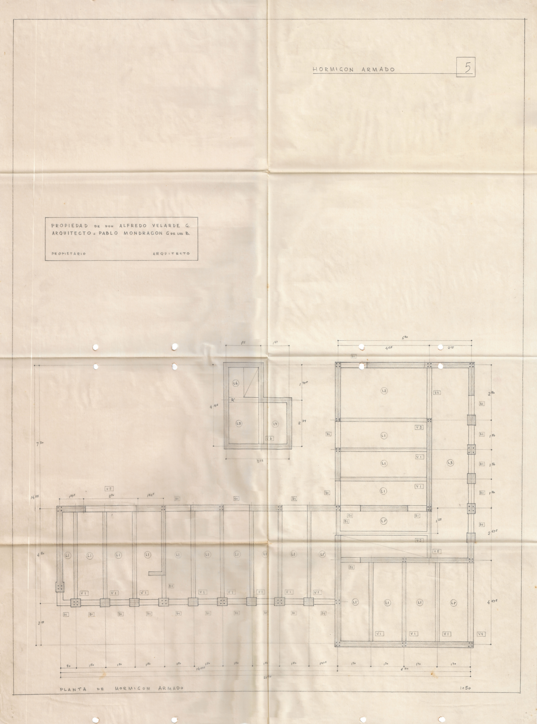 La propiedad de Don Alfredo Velarde G., ubicada en la comuna de Viña del Mar, está compuesta por un conjunto de planos arquitectónicos que detallan tanto la estructura general como los elementos constructivos específicos del proyecto.