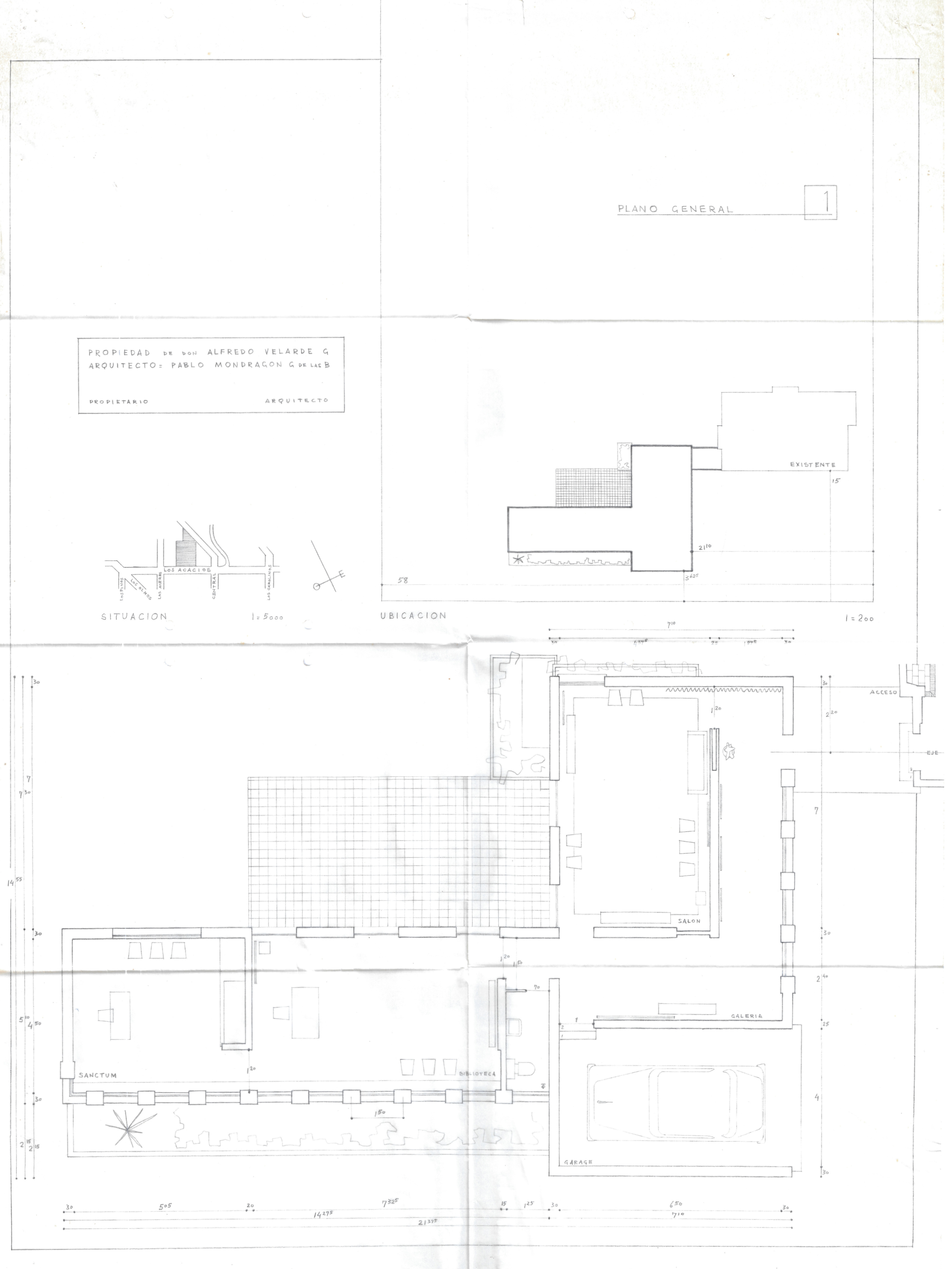 El plano general del inmueble se presenta en escala 1:50, complementado por las fachadas, también en escala 1:50, que muestran las orientaciones principales de la edificación. El proyecto incluye igualmente cortes en escala 1:50, los cuales permiten comprender la volumetría y la disposición interior.