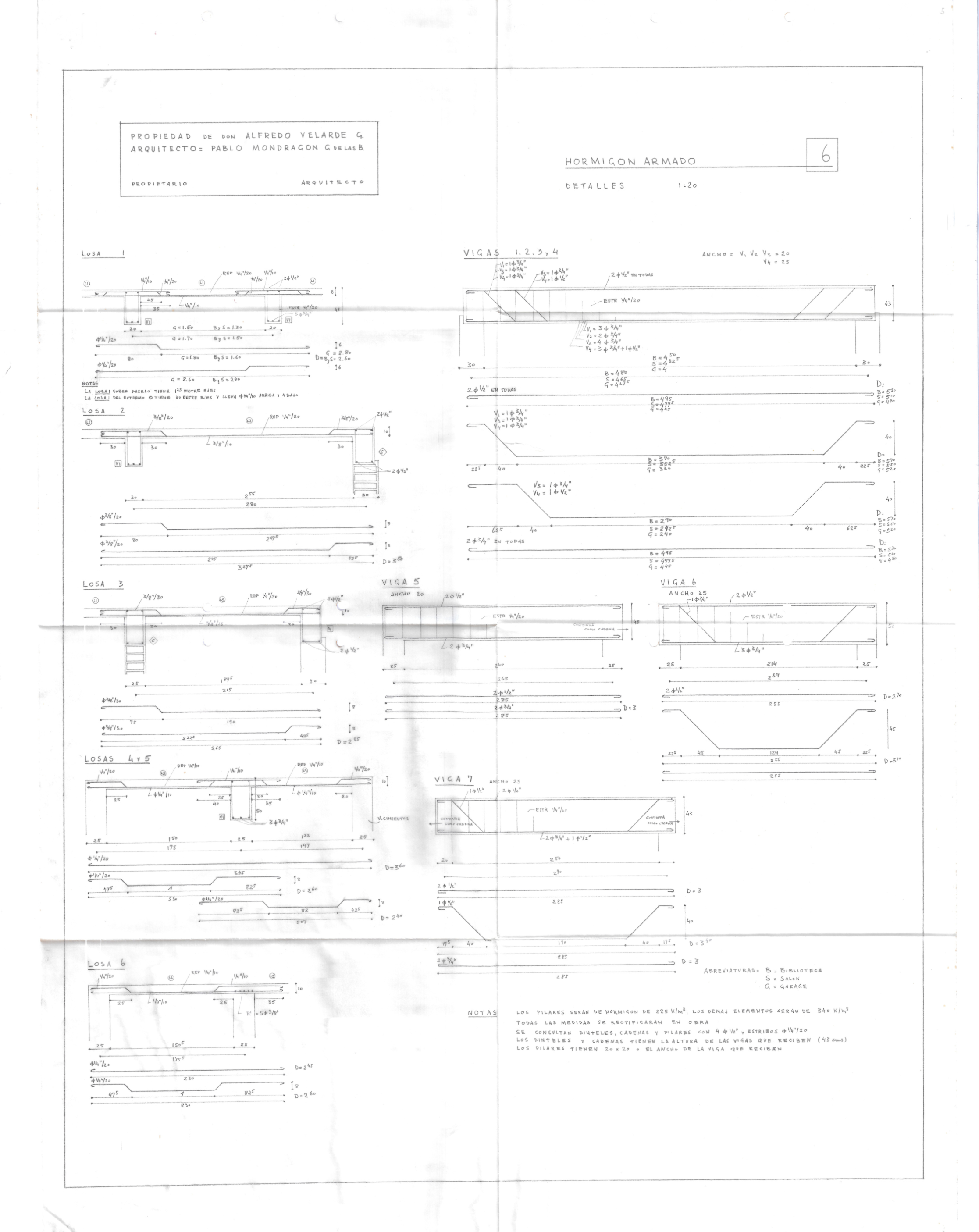 dc.description.abstract | dc.description.abstract | La propiedad de Don Alfredo Velarde G., ubicada en la comuna de Viña del Mar, está compuesta por un conjunto de planos arquitectónicos que detallan tanto la estructura general como los elementos constructivos específicos del proyecto. El plano general del inmueble se presenta en escala 1:50, complementado por las fachadas, también en escala 1:50, que muestran las orientaciones principales de la edificación. El proyecto incluye igualmente cortes en escala 1:50, los cuales permiten comprender la volumetría y la disposición interior. Se incorporan los cimientos en escala 1:50, especificando el uso de hormigón de 255 k/m², junto con planos de hormigón armado, tanto generales (esc. 1:50) como de detalles en escala 1:20. Asimismo, se presentan detalles de elevación y de chimenea en escala 1:20, así como persianas en escala 1:5. Los documentos contemplan también detalles de puertas, con la indicación expresa de que todas las medidas deben ser rectificadas en obra, y detalles de ventanas en escala 1:5, acompañados de la misma nota técnica. El conjunto se complementa con planos adicionales que describen puertas, ventanas, guardapolvos, molduras y junquillos. Finalmente, se adjunta el plano correspondiente a la subdivisión de los Sres. Alfredo Velarde Gómez y Amparo Velarde Gómez, en Viña del Mar, el cual incluye la planta, el plano de ubicación y las firmas de los propietarios. | |