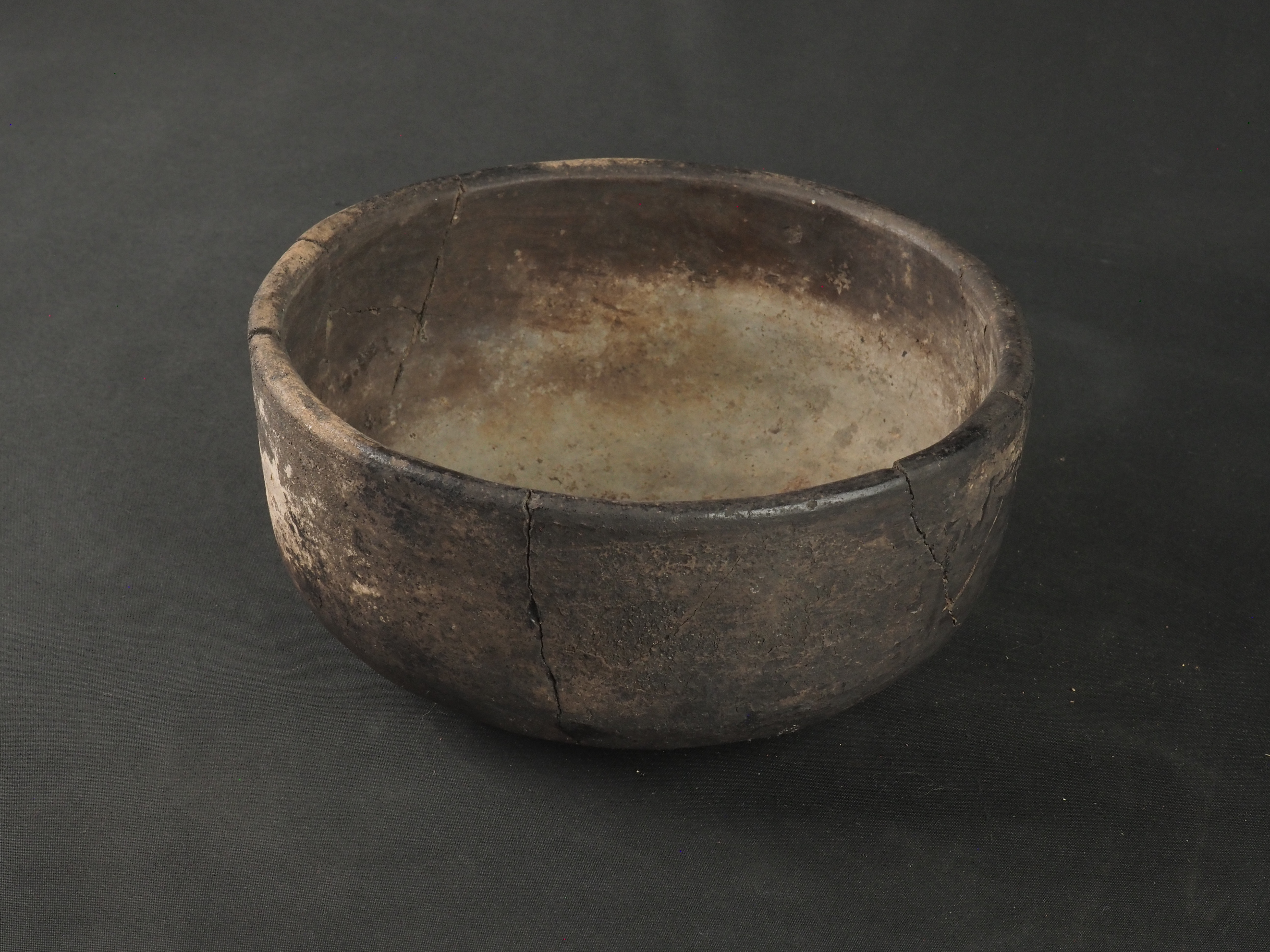 Contenedor abierto de uso doméstico. El cuerpo se encuentra completamente incinerado lo cual impide discernir algún tipo de elemento decorativo con observación simple. Sin embargo, se evidencia probable engobe blanco en el exterior de algunos fragmentos. Técnica: Arcilla modelada, alisada y pulida. Cerámica, aparentemente, engobada. Morfología: Objeto simétrico de estructura no restringida, perfil simple, cuerpo esférico, borde recto, labio redondeado y base subesférica. La unidad estructural del objeto se presenta en fragmentos unidos.