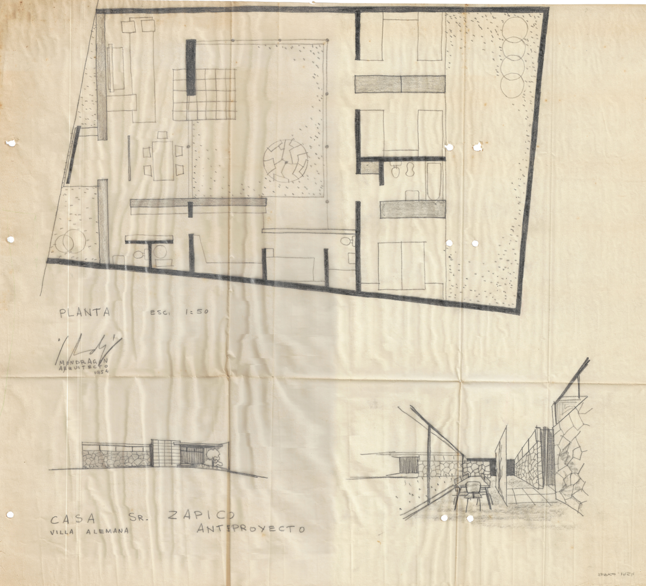 La casa del Sr. Zapico se encuentra ubicada en la comuna de Villa Alemana. El plano correspondiente al anteproyecto presenta el detalle de la planta arquitectónica en escala 1:50. Además, se incluyen en el mismo plano, un croquis de la fachada de la propiedad y un croquis del interior, los cuales complementan la representación general del proyecto.