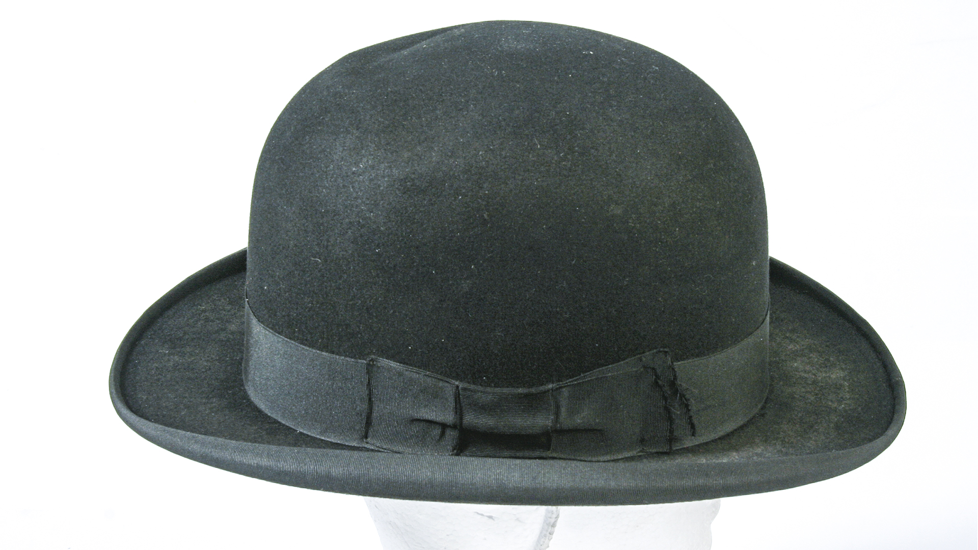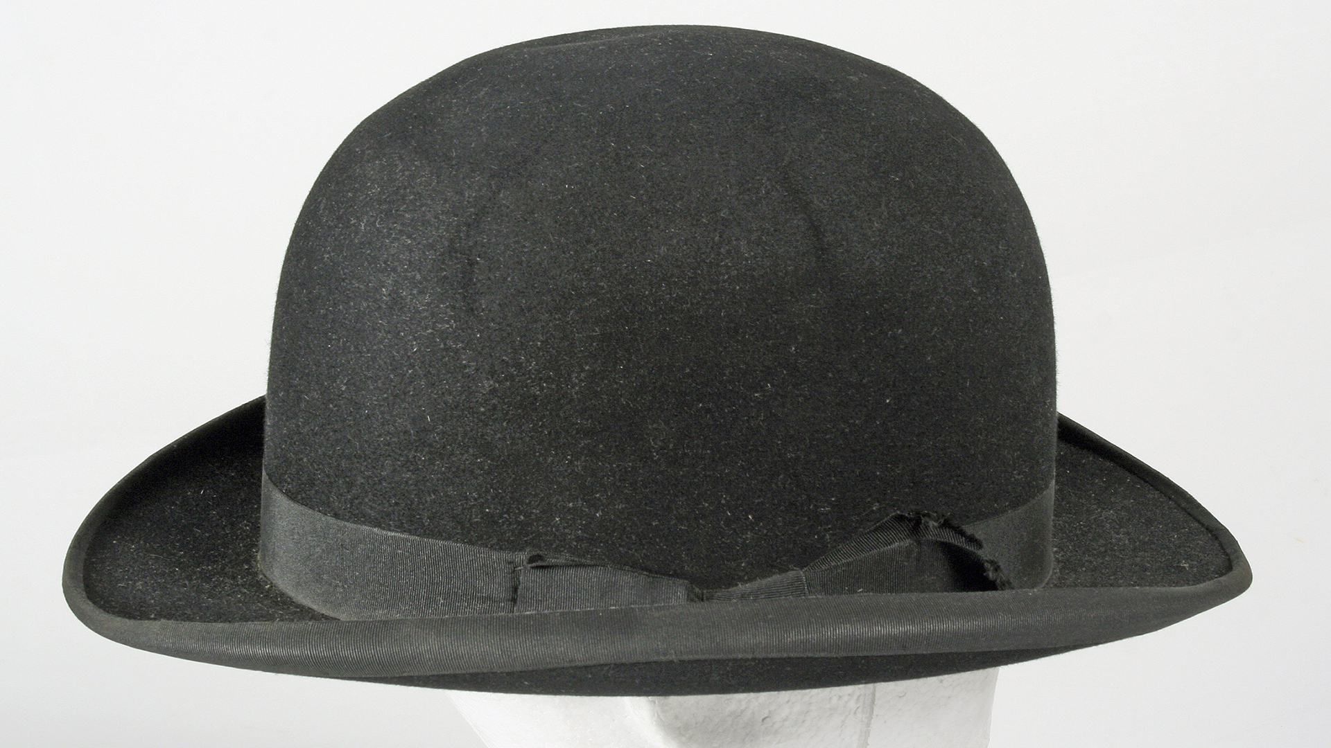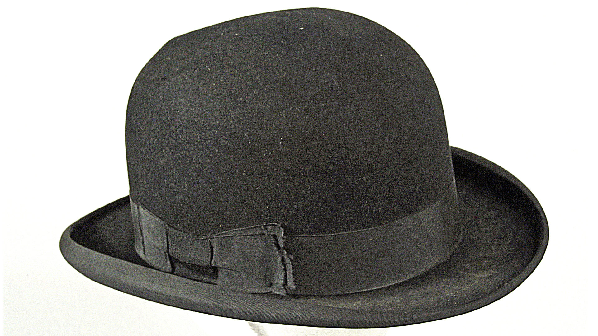 Sombrero de paño tipo hongo, copa redonda lazo negro en la banda a un costado. Etiqueta 'Glyn &Co Limited, Made expressly for L.A. Villarreal, Avda, Pedro Montt. 192, Valparaíso.