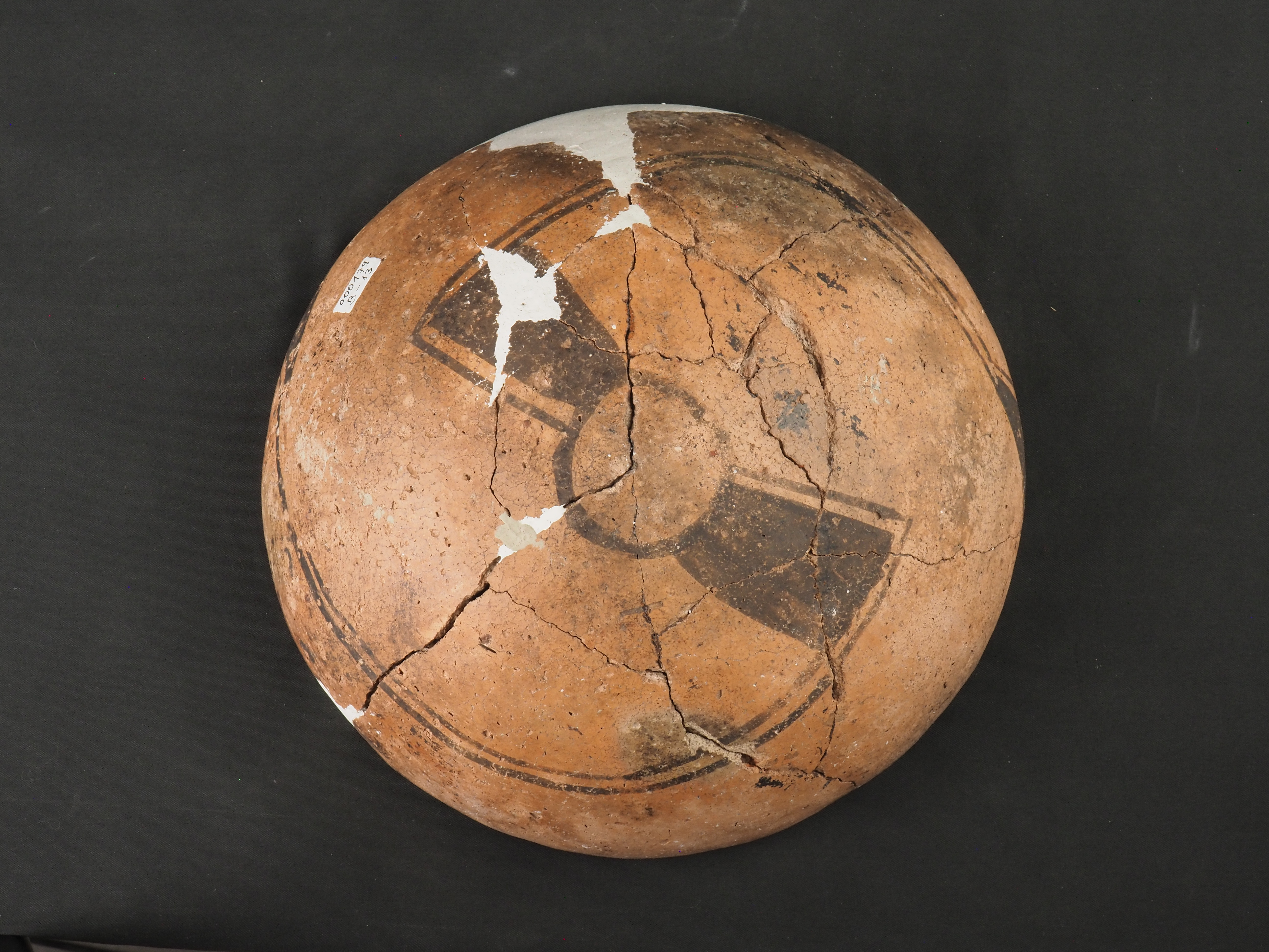 dc.description | dc.description | Contenedor abierto de pasta color salmón decorada con trinaclio en el exterior y cruz diametral con motivos geométricos en el interior ambos con pintura negra. Técnica: Arcilla modelada, alisada y pulida. Cerámica pintada. Morfología: Objeto simétrico de estructura no restringida, perfil simple, cuerpo esférico, borde invertido, labio redondeado y base curva. La unidad estructural del objeto se presenta en fragmentos unidos, en algunos casos con reintegración volumétrica en el borde y el cuerpo con yeso blanco. | |