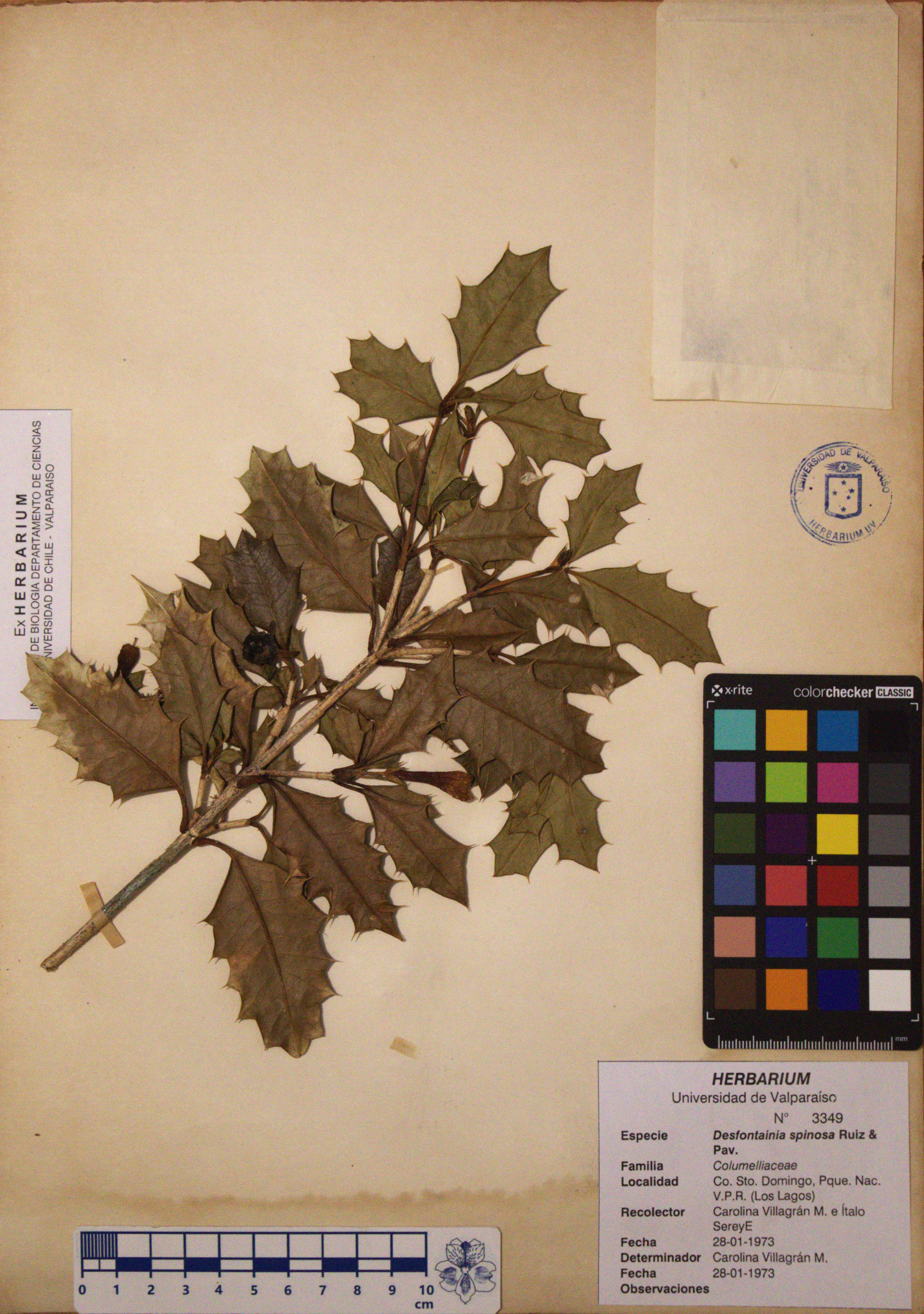 Flora nativa originaria de Chile, Argentina, Perú, Bolivia, Ecuador, Colombia, Venezuela, Costa Rica y Panamá perteneciente a la familia Columelliaceae y del género Desfontainia.