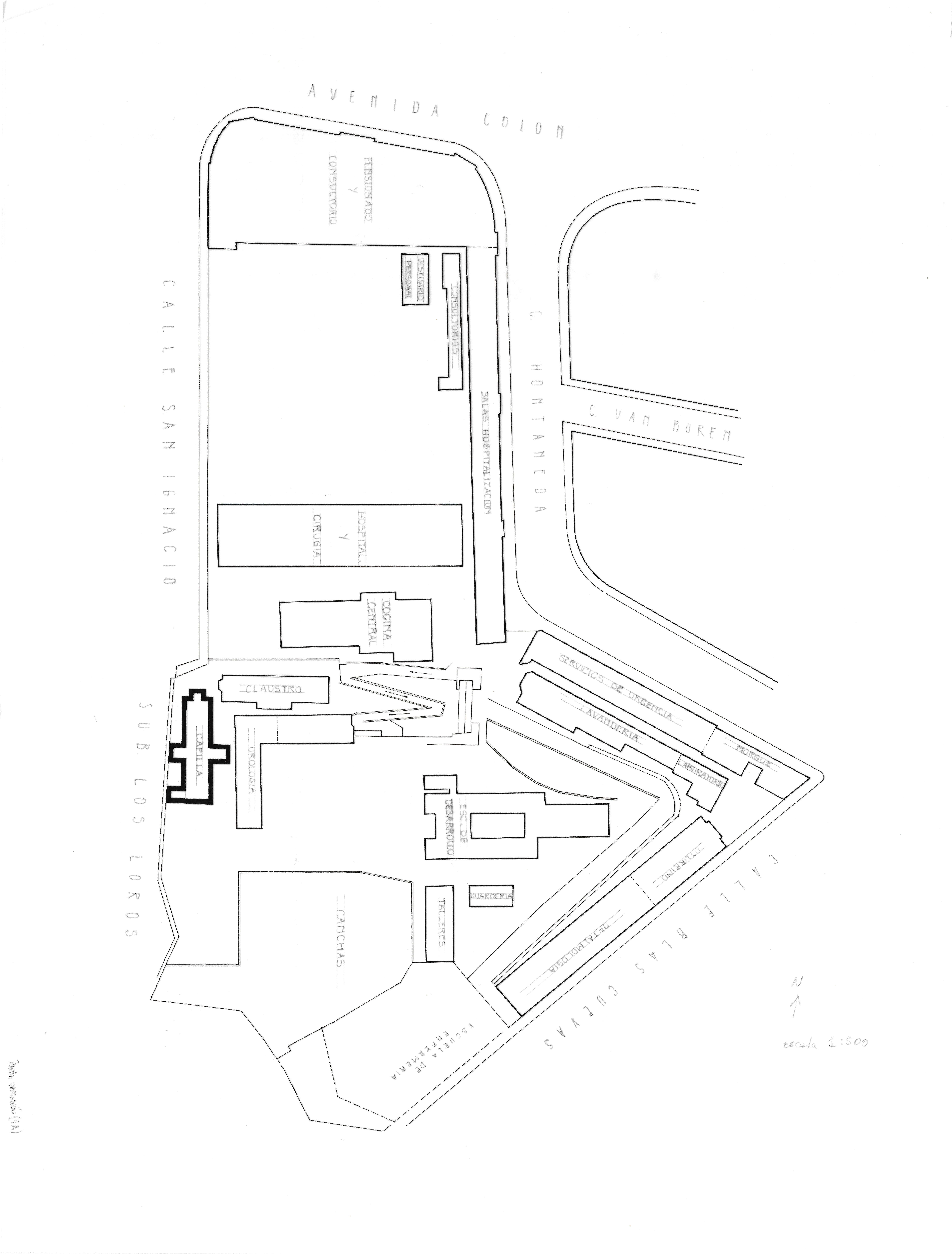 Plano s/n°: planta de ubicación (1A), escala 1:500. Plano n° 30: planta primer nivel, escala 1.50. Plano n° 32: elevación principal corte A-A, escala 1.50. Plano n° 39: elevación subida los loros, escala 1:50.