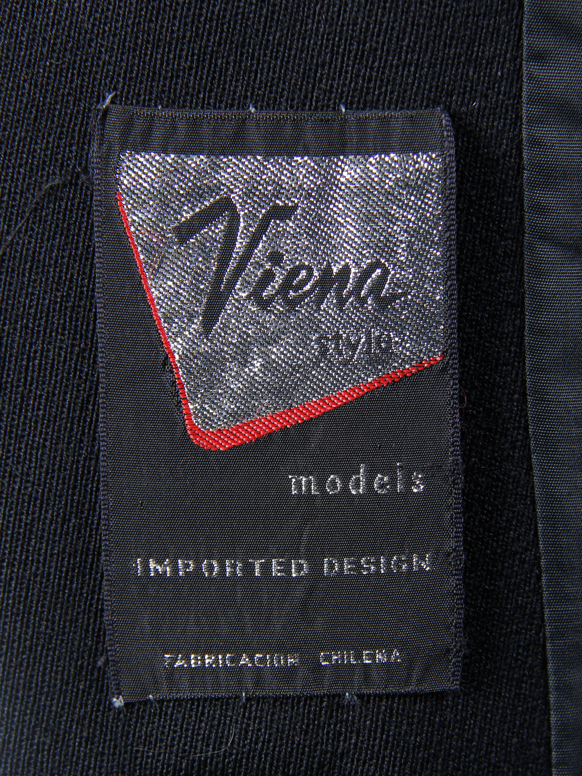 Abrigo de mujer de tela shantung color negro. 4 botones forrados, (1 faltante). En bolsillos delanteros y franja espalda costuras pespunte recto. Etiqueta marca 'Viena Style'. Fabricación Chilena.