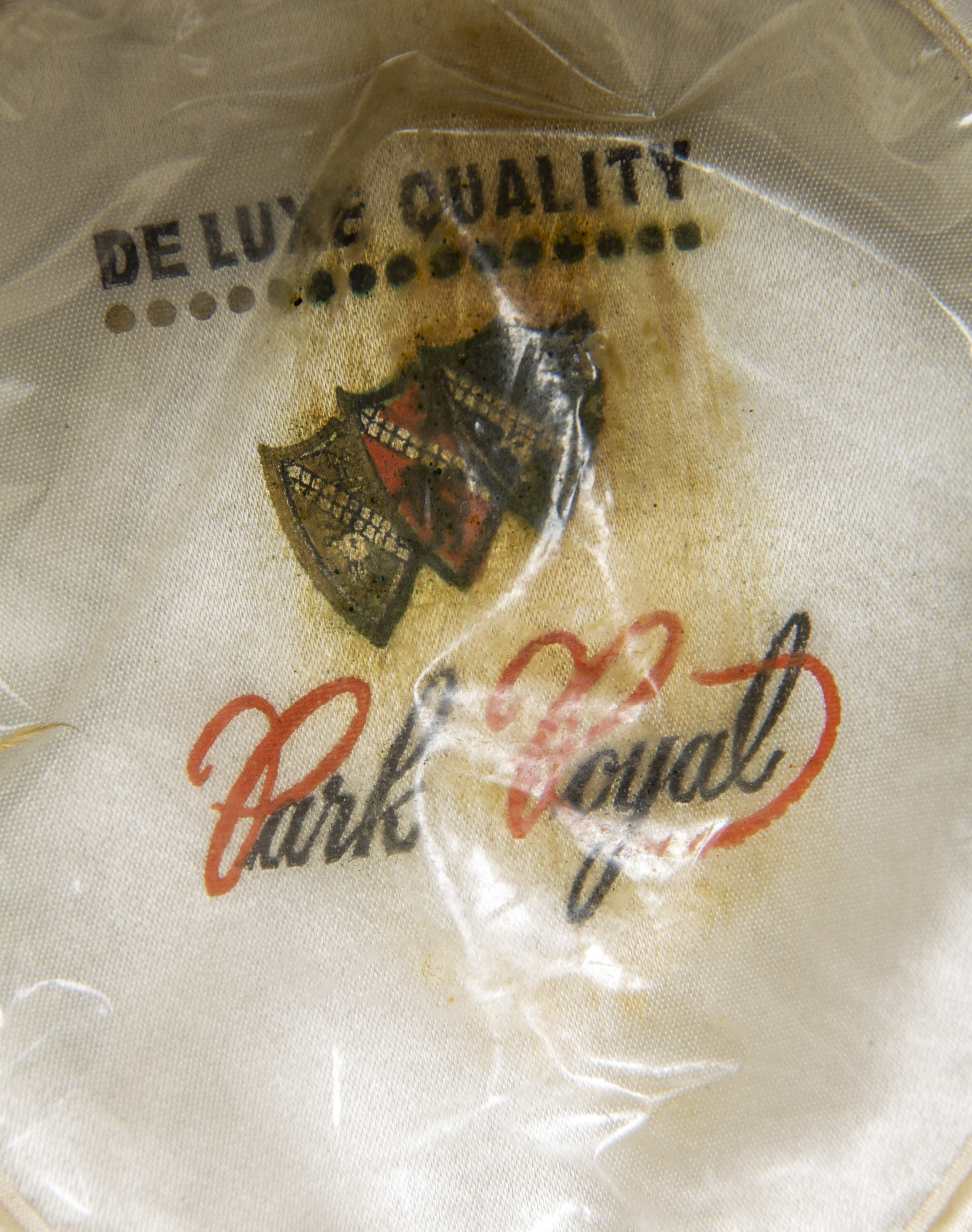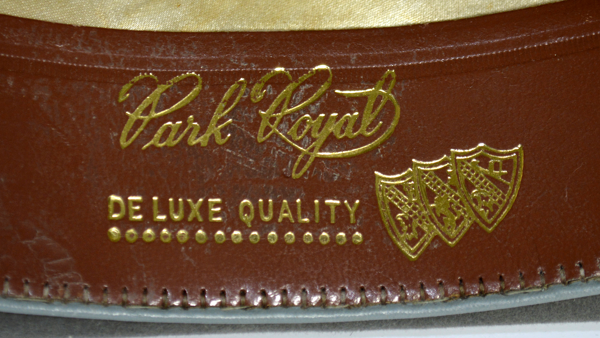 Sombrero paño gris etiqueta 'Park Royal Delux Quality' - comercializado por tienda 'Xuga', ubicada en Condell 1273, Valparaíso.